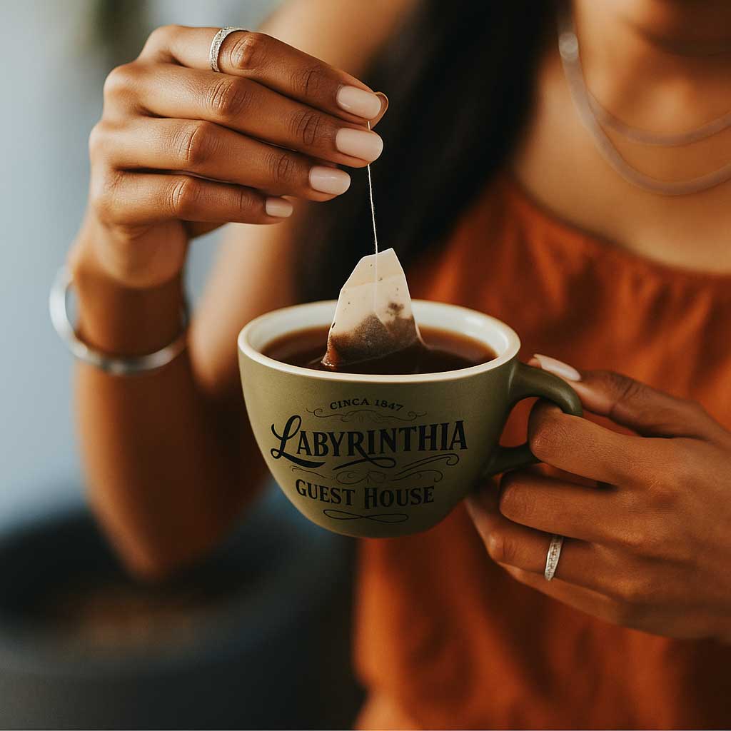 Initially, we offer Stinging Nettle (Urtica dioica), Plantain (Plantago major), and Mugwort (Artemisia vulgaris) herbal teas. The former dining room here on the property is now the Labyrinthia Tearoom. For guest stays, the Labyrinthia Tearoom facing the deck is open 24/7. Here, our own teas and commercial teas too, are available. Including actual tea from the Camellia sinensis shrub of Asian fame.