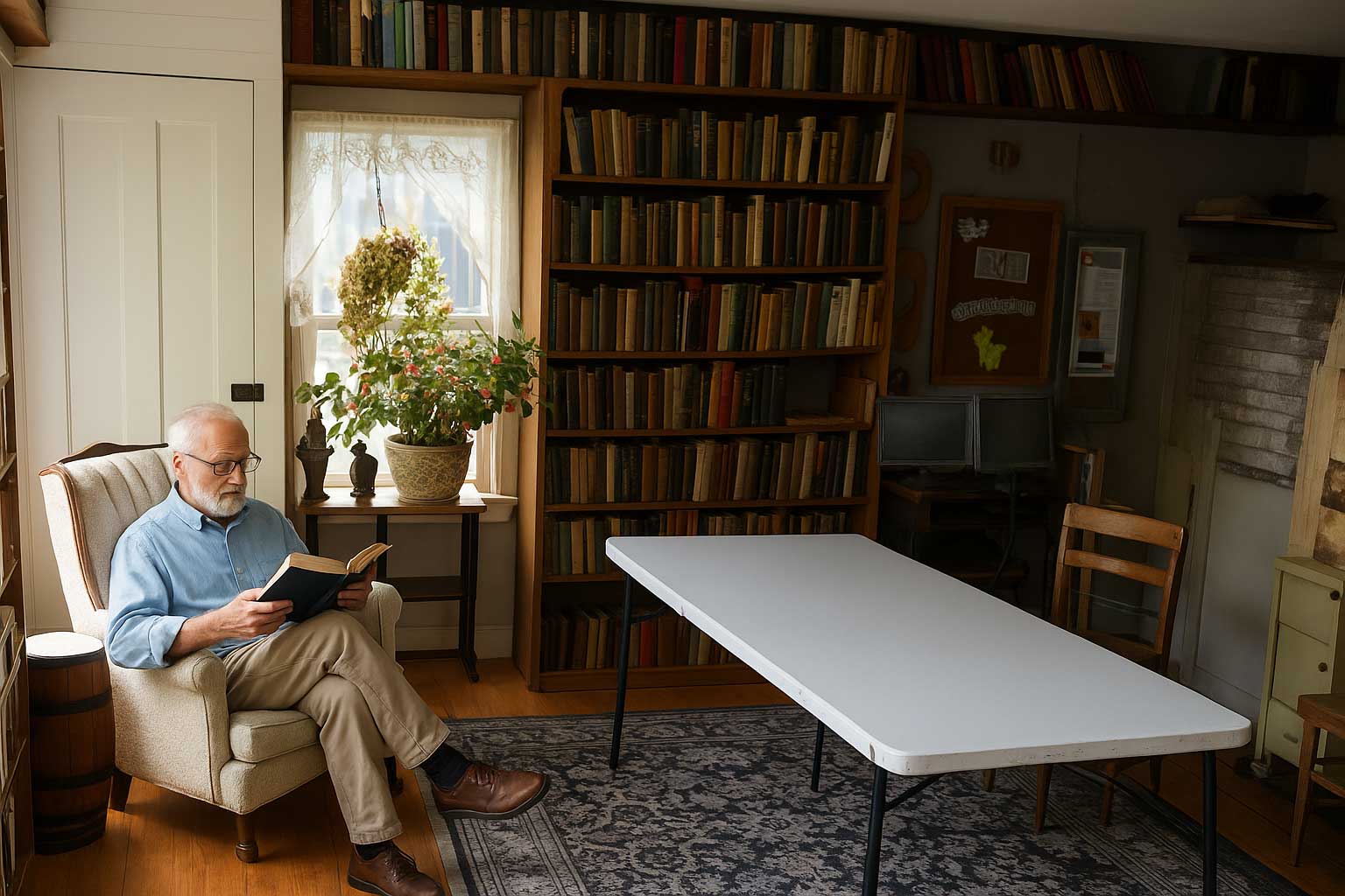 There is a small library of movie CDs in the living room. There are lots on conspiracies, an interest of the host. For books, Ye Olde Tome (the former name), a bookstore operates quietly here. The botanical and horticultural collection of books contains many antique ones from the seventeenth century with some being difficult to locate.