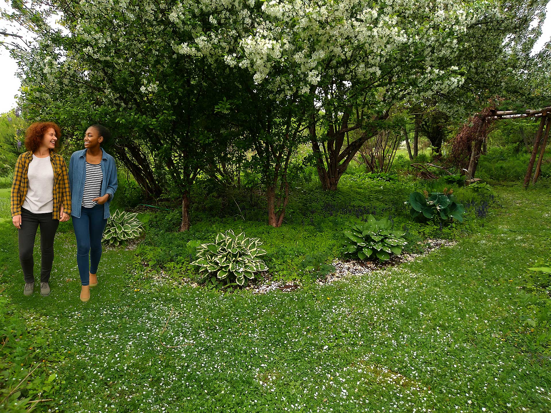 We offer an organic and a permaculturally designed garden and trails. The host’s garden philosophy is “selective weeding,” which accounts for many of the wildflowers and indigenous trees. These volunteers may be left where they germinate. The design has a natural, wild look and feeling to it. Flowers bloom in every direction throughout the season.